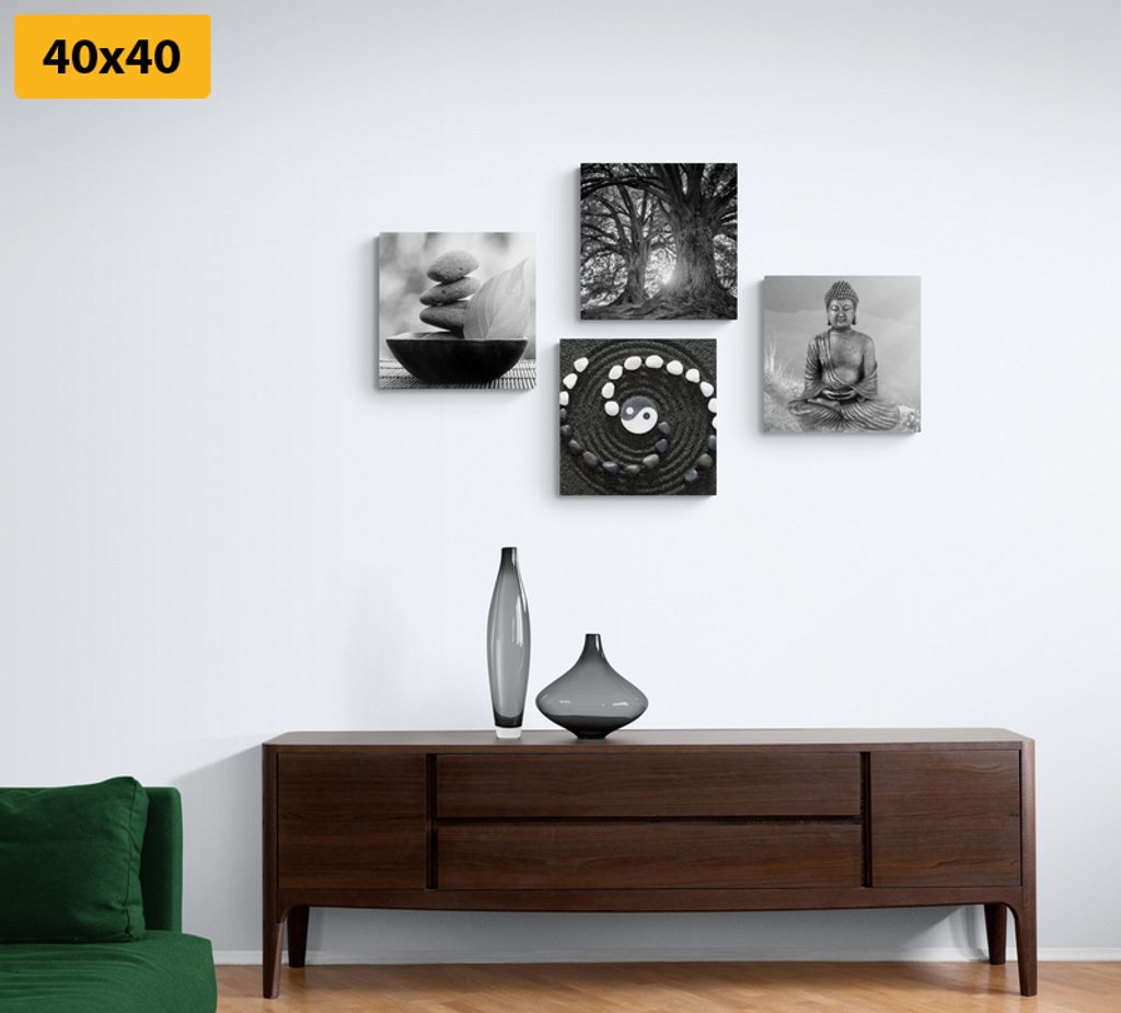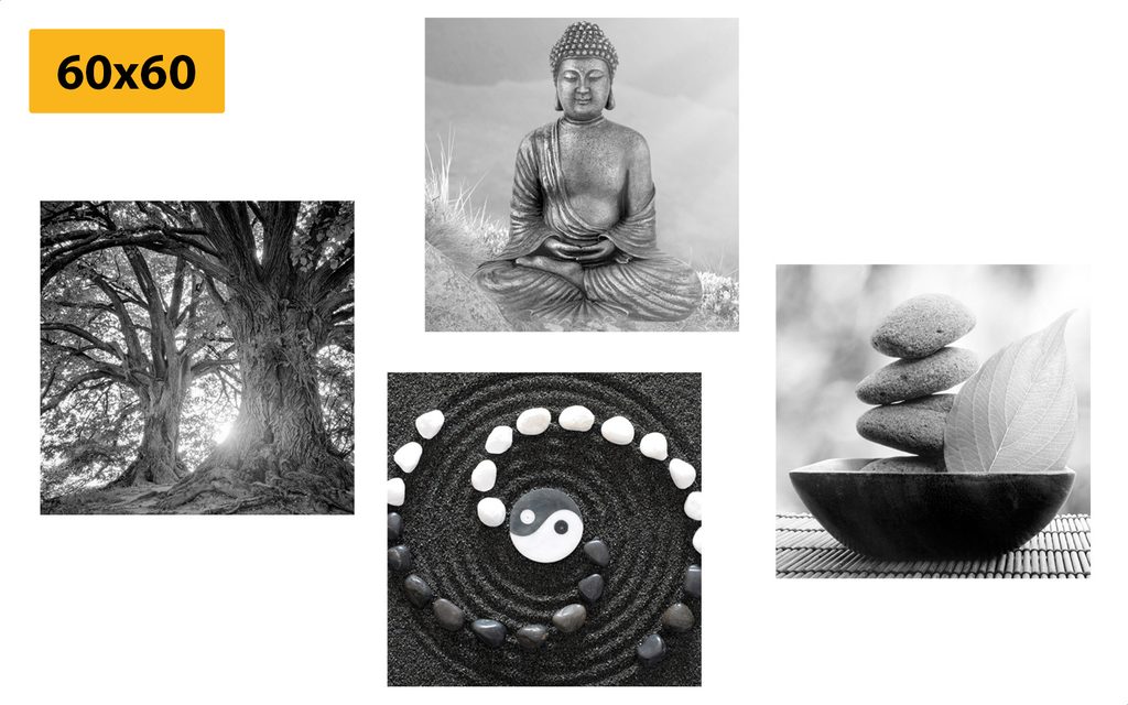 Set obrazov predmety Feng Shui v čiernobielom prevedení