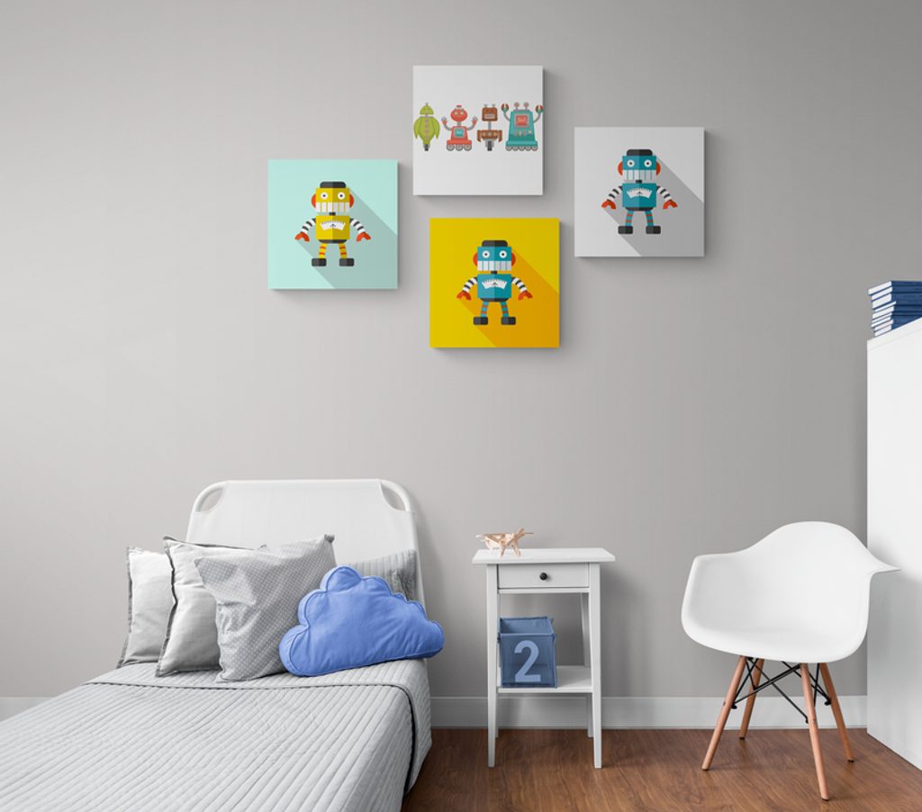 Fantázii sa medze nekladú a preto si set, ktorý tvoria 4 obrazy, môžete rozmiestniť na stenu ako len chcete. Možností je veľa, buď si ich usporiadate vedľa seba, striedavo, alebo pod sebou. Každý zo setov je univerzálny a preto umiestnenie jednotlivých obrazov necháme na vás.
