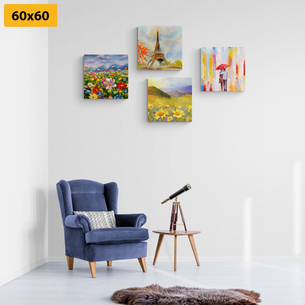 Fantázii sa medze nekladú a preto si set, ktorý tvoria 4 obrazy, môžete rozmiestniť na stenu ako len chcete. Možností je veľa, buď si ich usporiadate vedľa seba, striedavo, alebo pod sebou. Každý zo setov je univerzálny a preto umiestnenie jednotlivých obrazov necháme na vás.