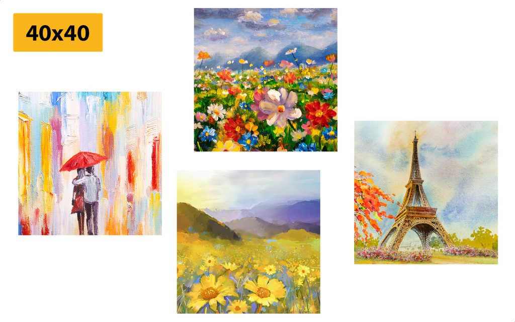 Naše sety obrazov, ktoré sa skladajú zo 4 obrazov ponúkame v dvoch rozmeroch (v cm):
