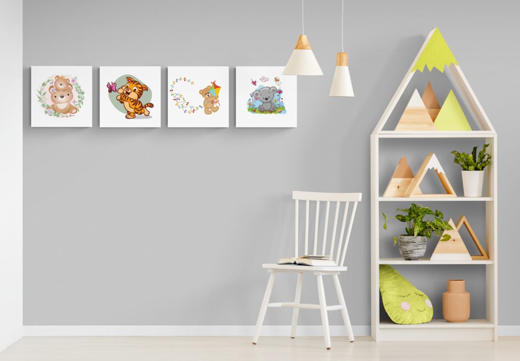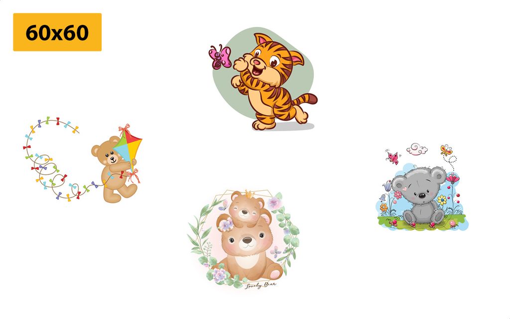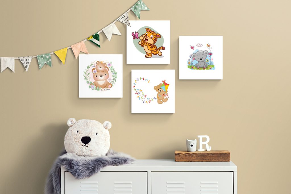 Fantázii sa medze nekladú a preto si set, ktorý tvoria 4 obrazy, môžete rozmiestniť na stenu ako len chcete. Možností je veľa, buď si ich usporiadate vedľa seba, striedavo, alebo pod sebou. Každý zo setov je univerzálny a preto umiestnenie jednotlivých obrazov necháme na vás.