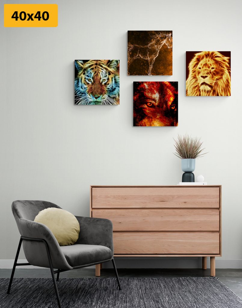 Fantázii sa medze nekladú a preto si set, ktorý tvoria 4 obrazy, môžete rozmiestniť na stenu ako len chcete. Možností je veľa, buď si ich usporiadate vedľa seba, striedavo, alebo pod sebou. Každý zo setov je univerzálny a preto umiestnenie jednotlivých obrazov necháme na vás.