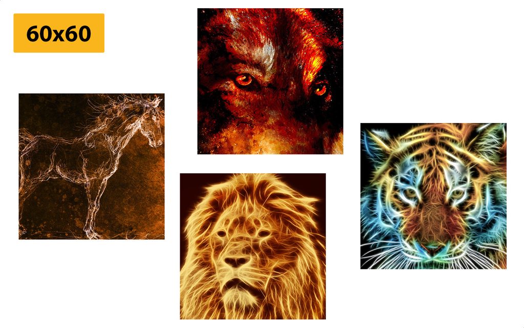 Set obrazov zvierací kamaráti s indiánskymi čelenkami