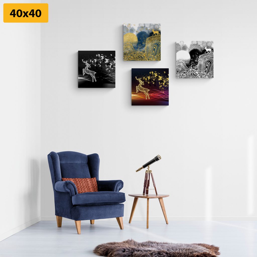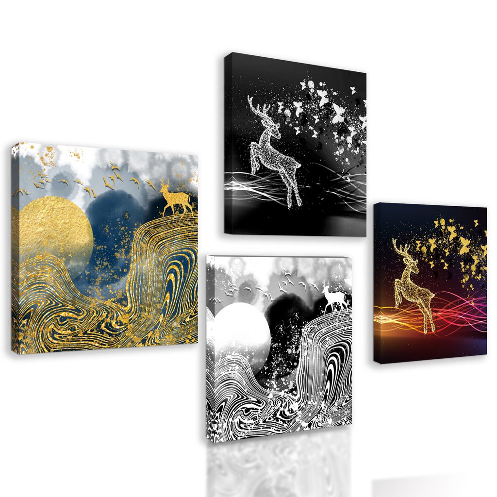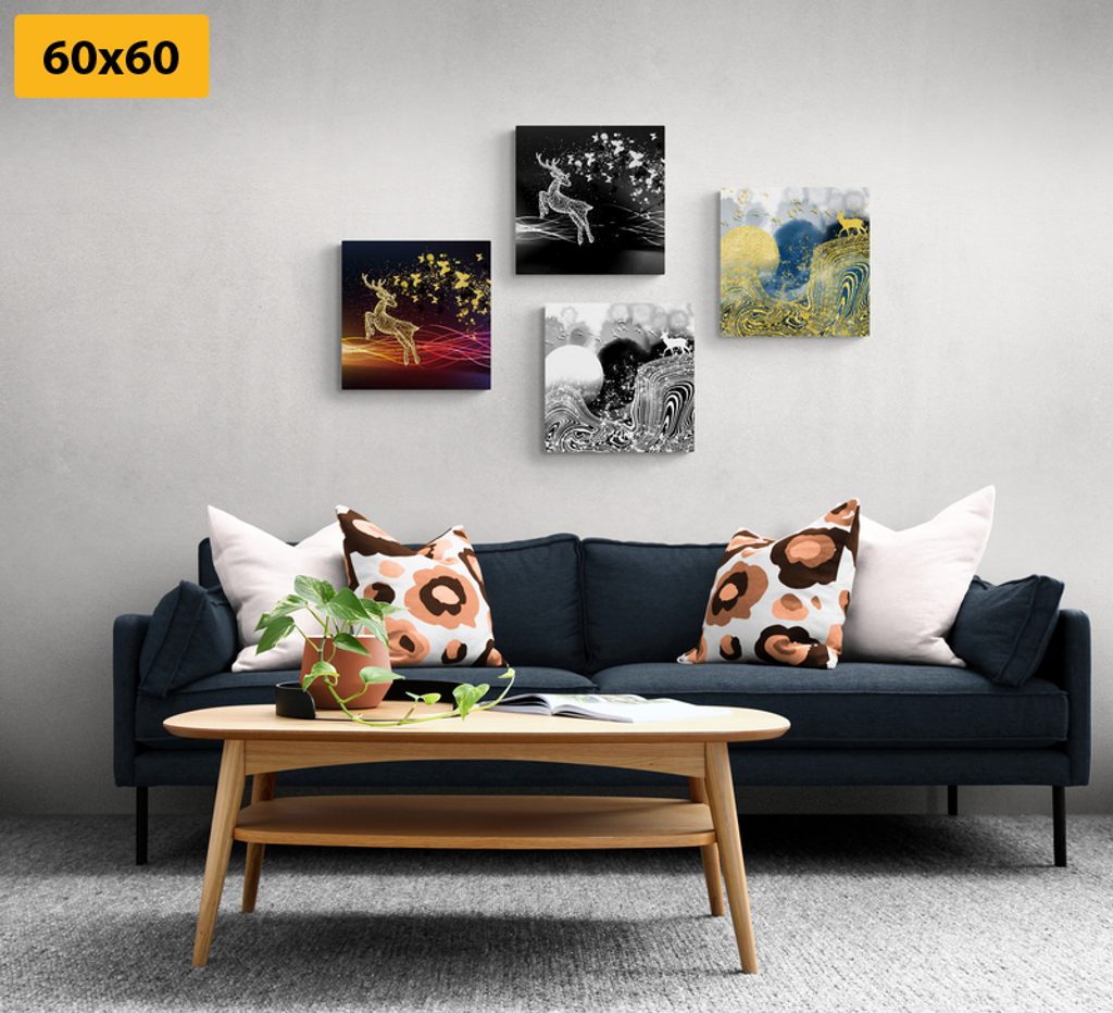 Fantázii sa medze nekladú a preto si set, ktorý tvoria 4 obrazy, môžete rozmiestniť na stenu ako len chcete. Možností je veľa, buď si ich usporiadate vedľa seba, striedavo, alebo pod sebou. Každý zo setov je univerzálny a preto umiestnenie jednotlivých obrazov necháme na vás.