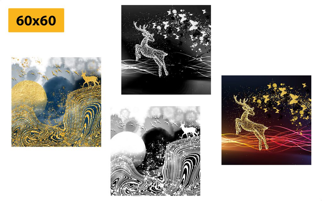 Set obrazov zaujímavé jelene v abstraktnom prevedení