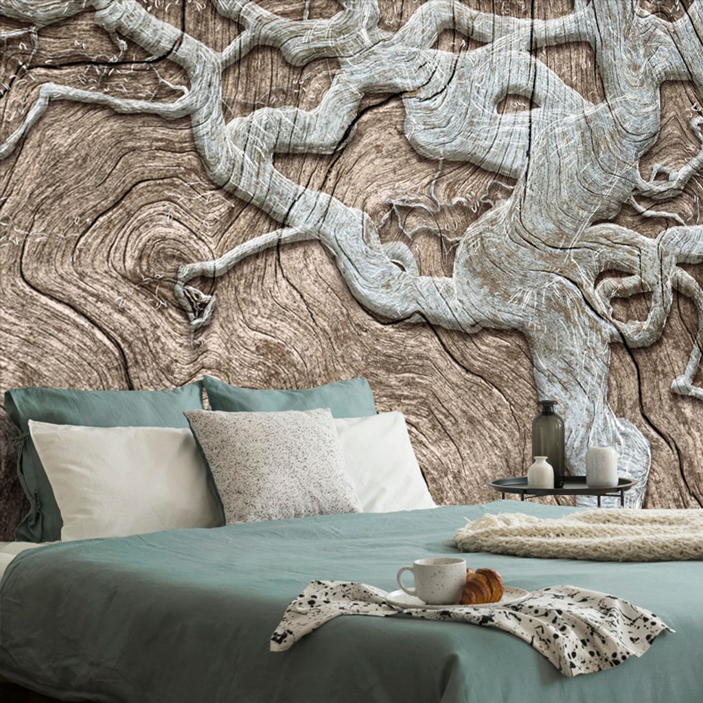 Tapeta abstraktný maľovaný strom v béžovom prevedení