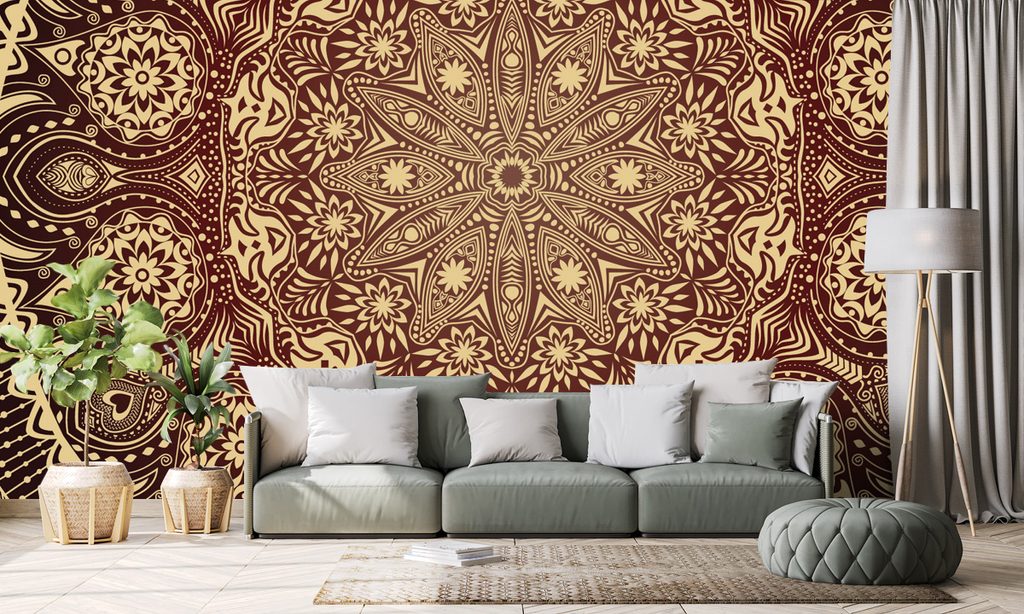 Tapeta bordová luxusná Mandala