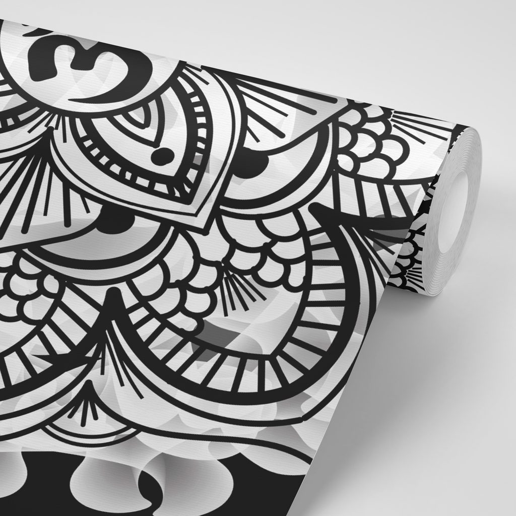 Tapeta čiernobiela abstraktná Mandala