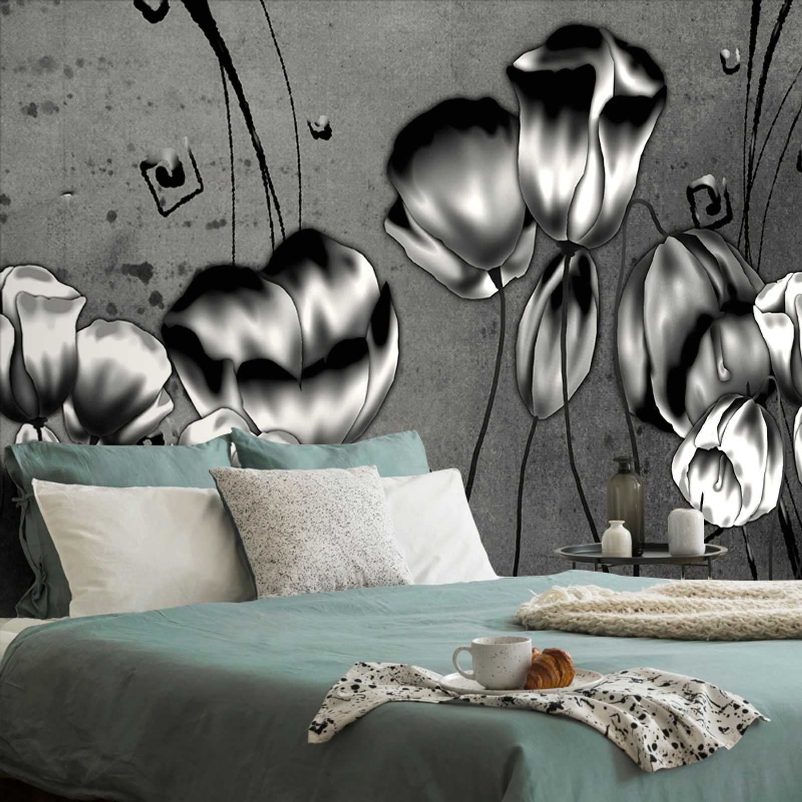 Tapeta čiernobiele etno kvety vlčieho maku