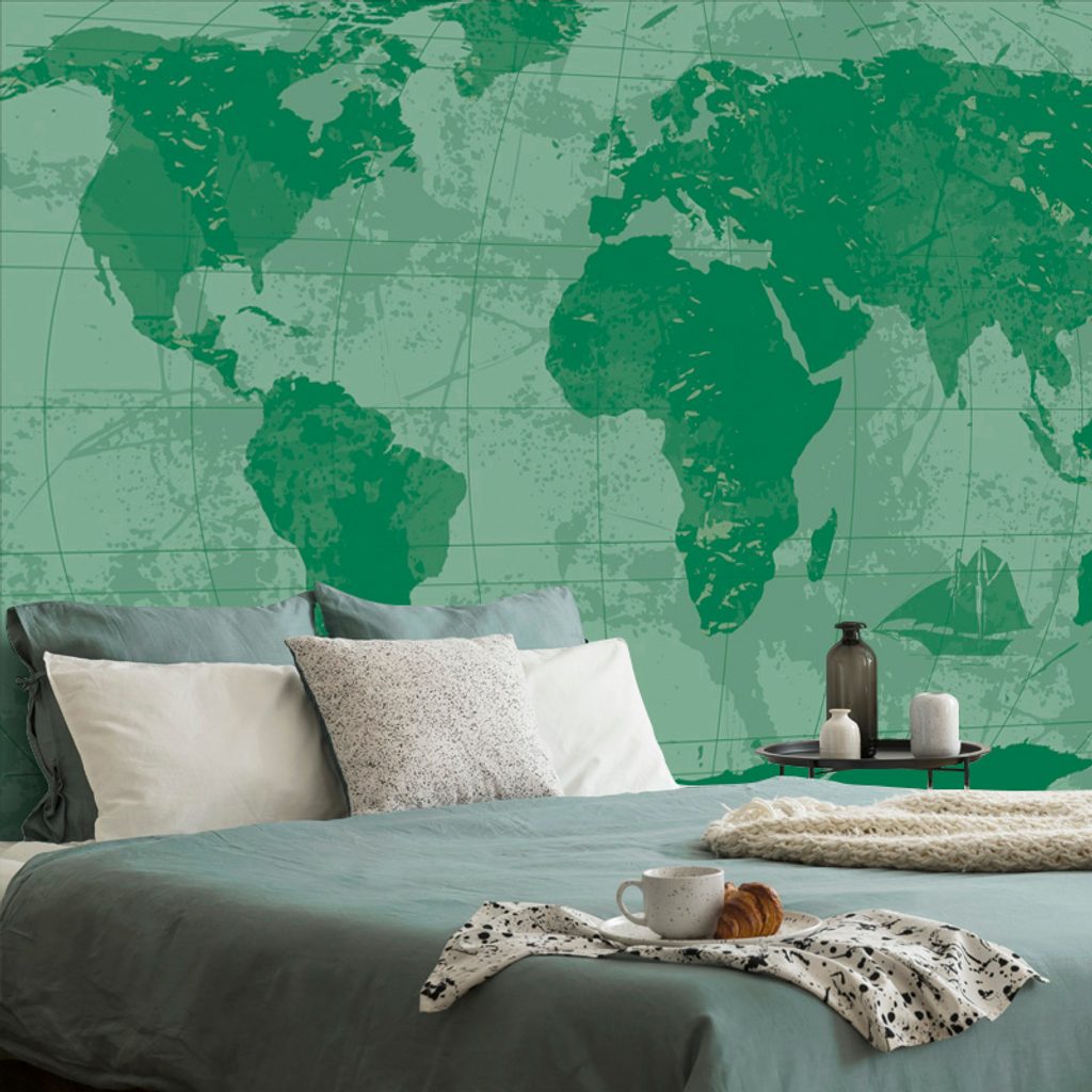 Tapeta historická mapa sveta v zelenom prevedení