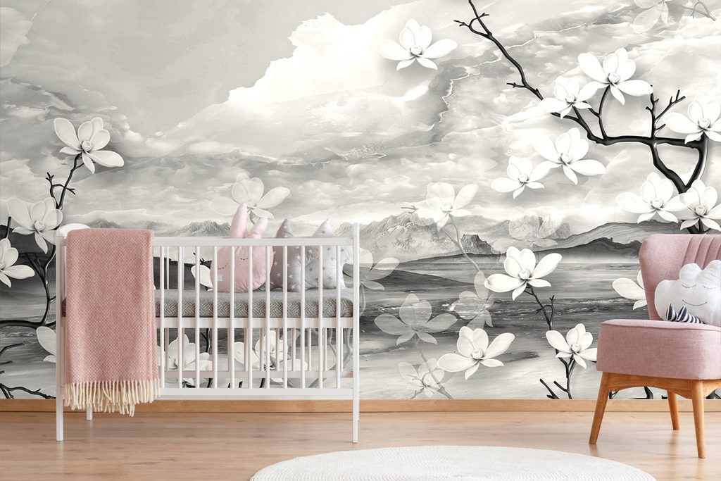 Jedinečná čiernobiela samolepiaca tapeta krajina kúziel