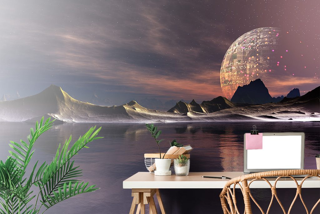 Jedinečná samolepiaca tapeta čiernobiela fantasy planéta