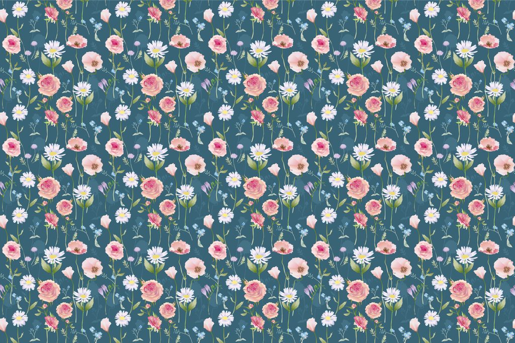 Tapeta lúčne kvety v modrom prevedení