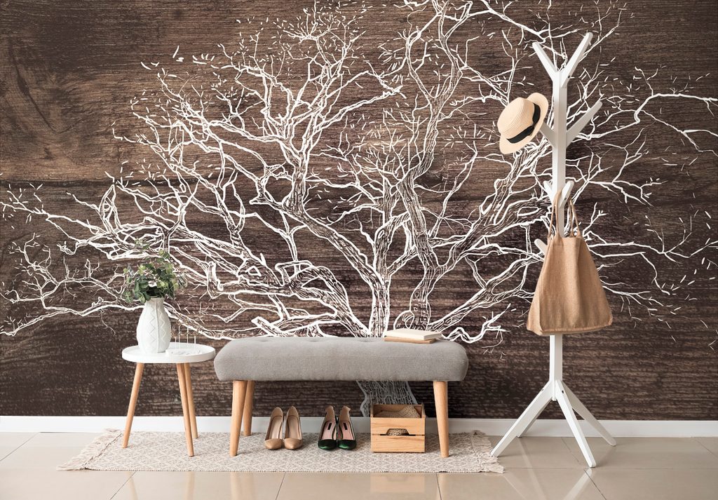 Tapeta majestátna koruna stromu na drevenom pozadí