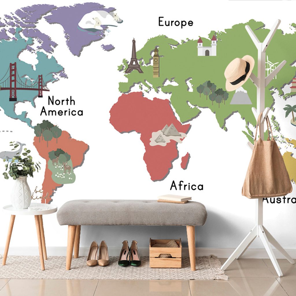 Samolepiaca tapeta moderná mapa sveta v čiernobielom prevedení