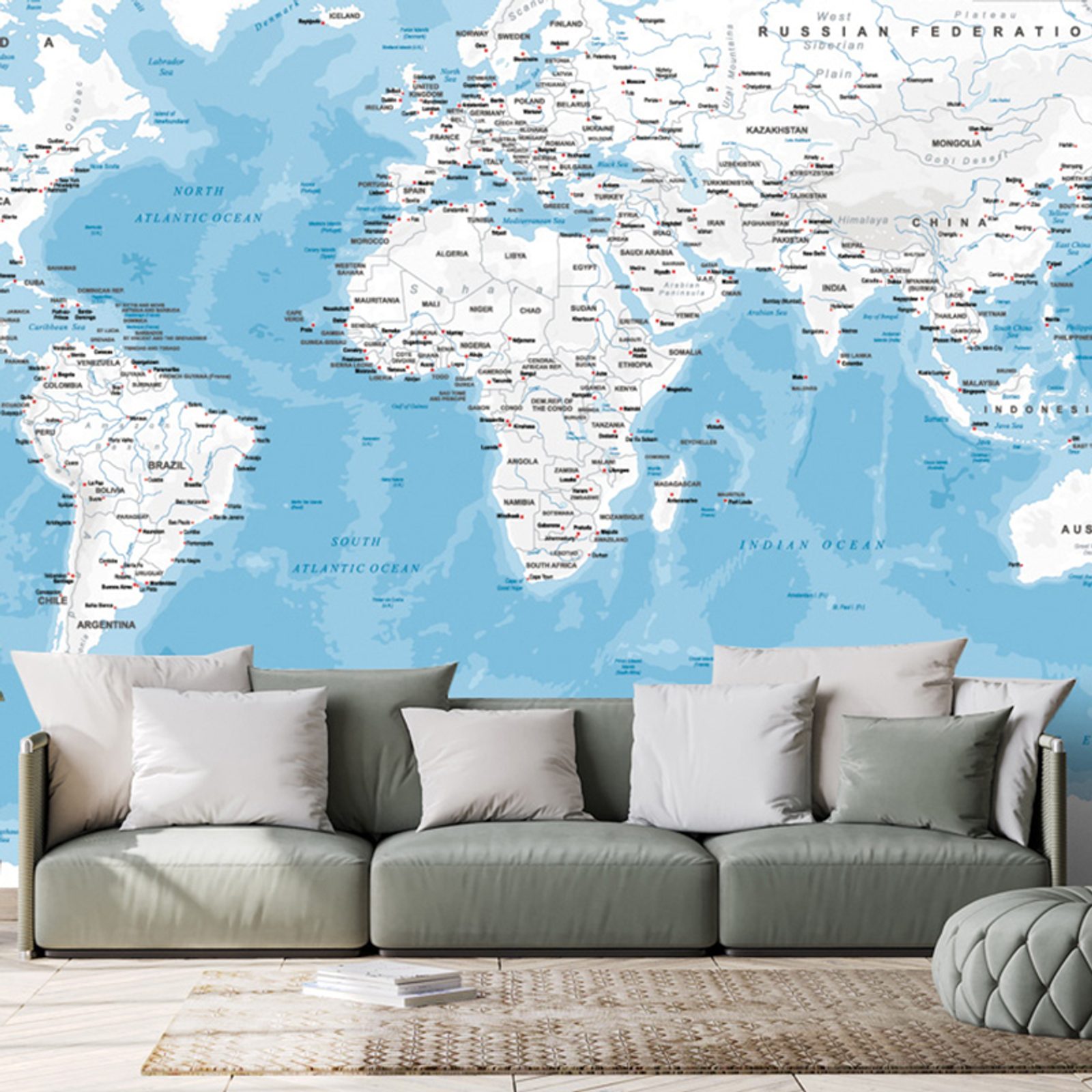 Tapeta moderná mapa sveta v modrom prevedení