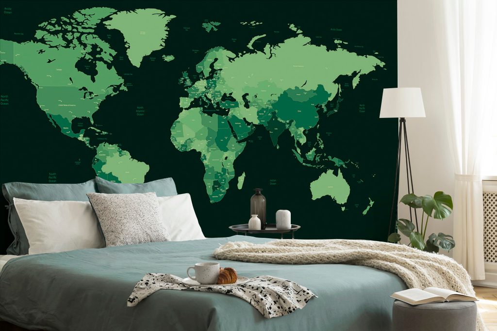 Samolepiaca tapeta moderná mapa sveta na drevenom podklade