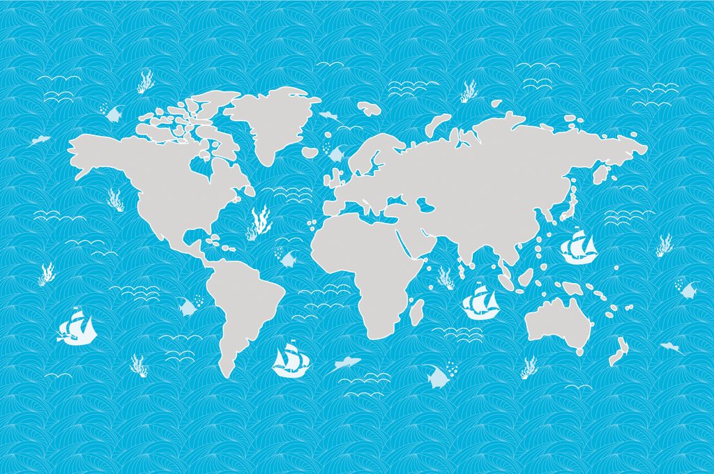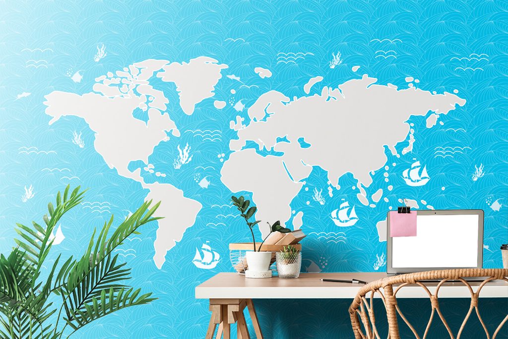 Tapeta mapa sveta s motívom mora