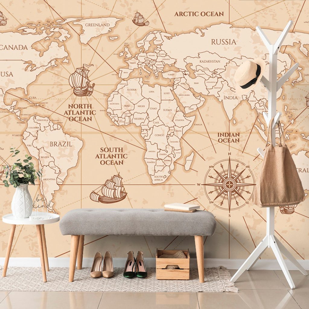Tapeta moderná mapa sveta v sépiovom prevedení