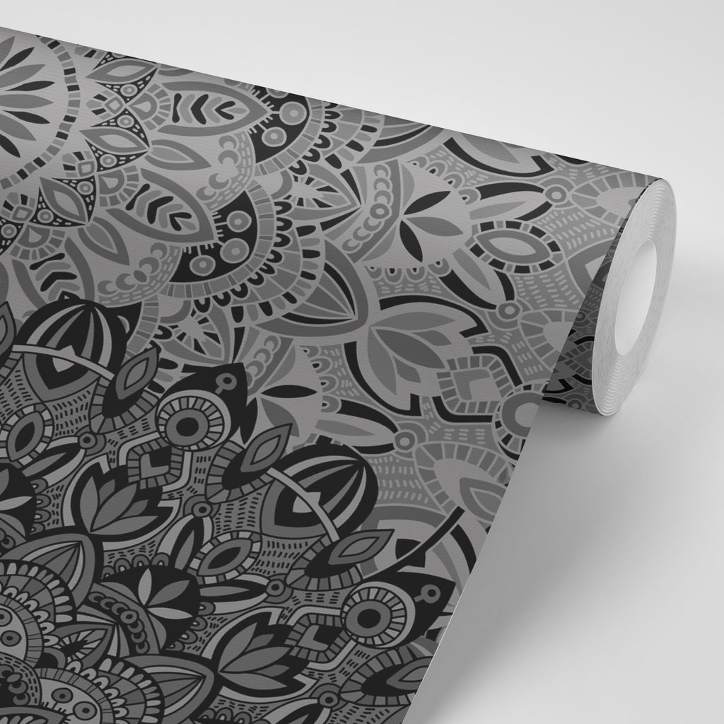 Samolepiaca tapeta čiernobiele kvety v impresionistickom štýle