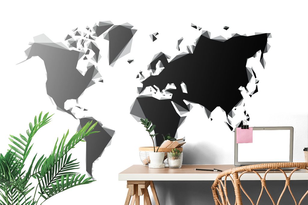 Tapeta moderná mapa sveta v čiernobielom prevedení
