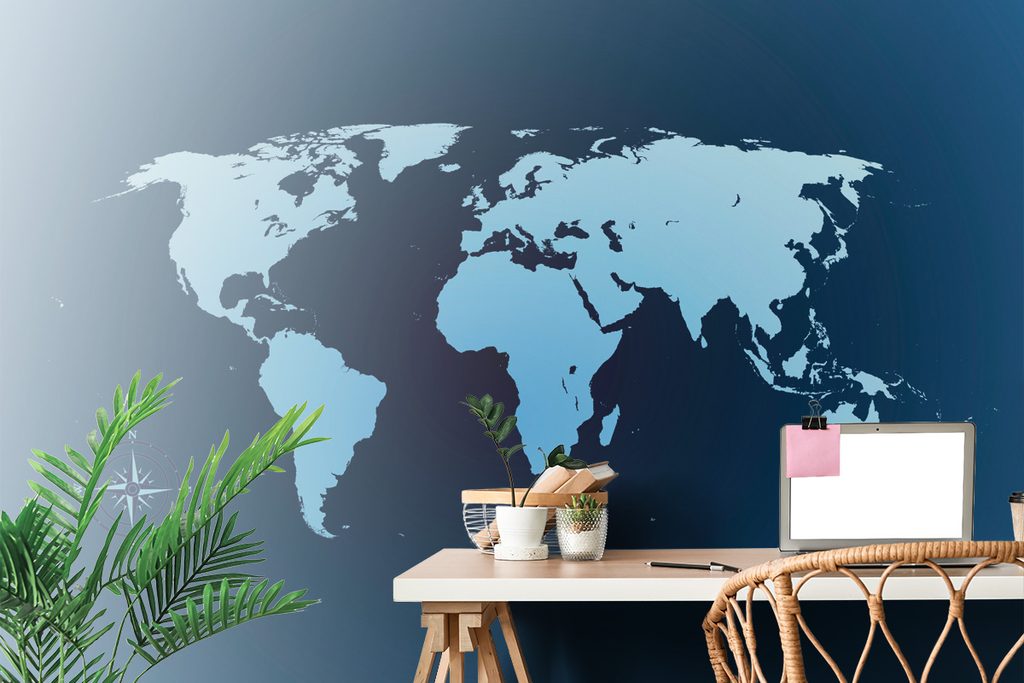 Tapeta moderná mapa sveta v modrom prevedení