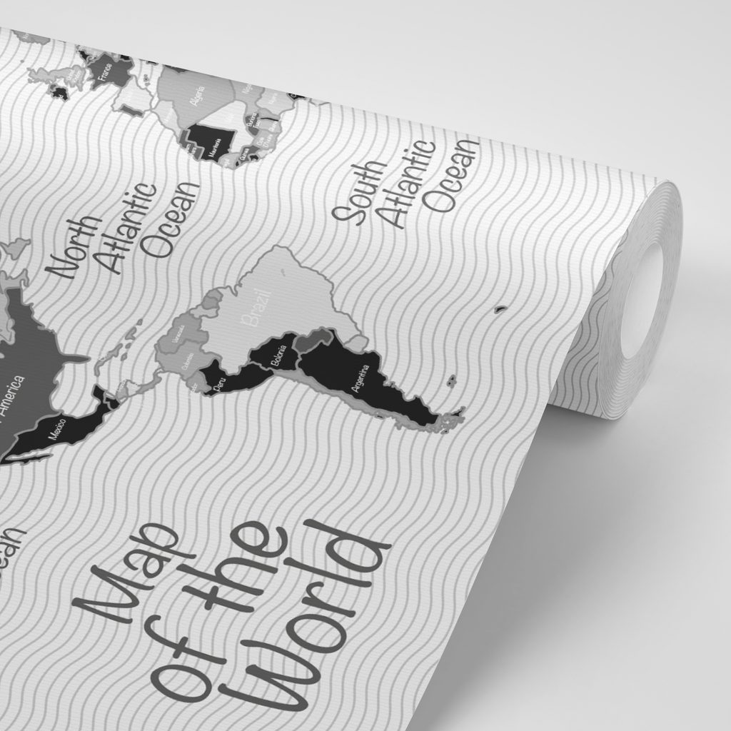Tapeta neobyčajná mapa sveta v čiernobielom prevedení