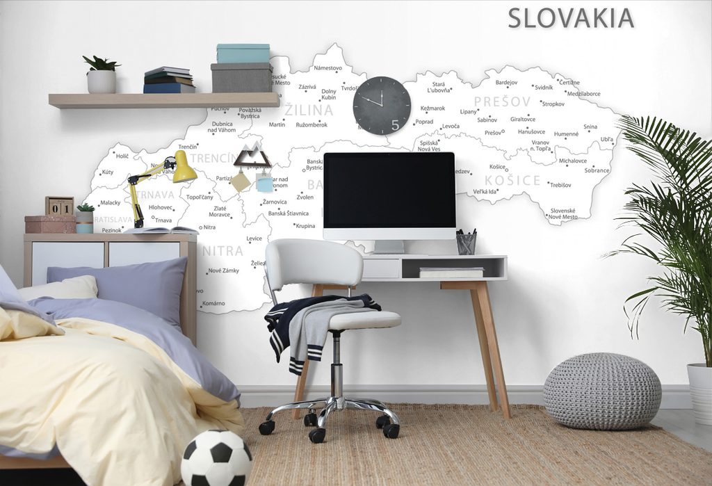 Tapeta podrobná mapa Slovenskej republiky v čiernobielom prevdení