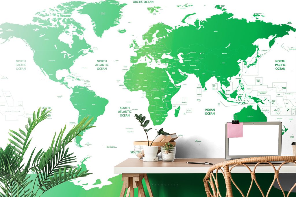 Tapeta podrobná mapa sveta v zelenej farbe