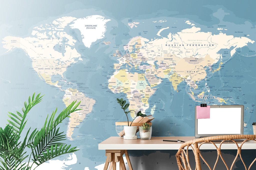 Samolepiaca tapeta béžová mapa sveta pre dobrodruhov