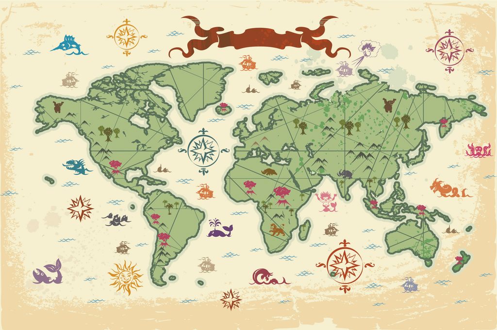 Samolepiaca tapeta zaujímavá mapa na modrom pozadí