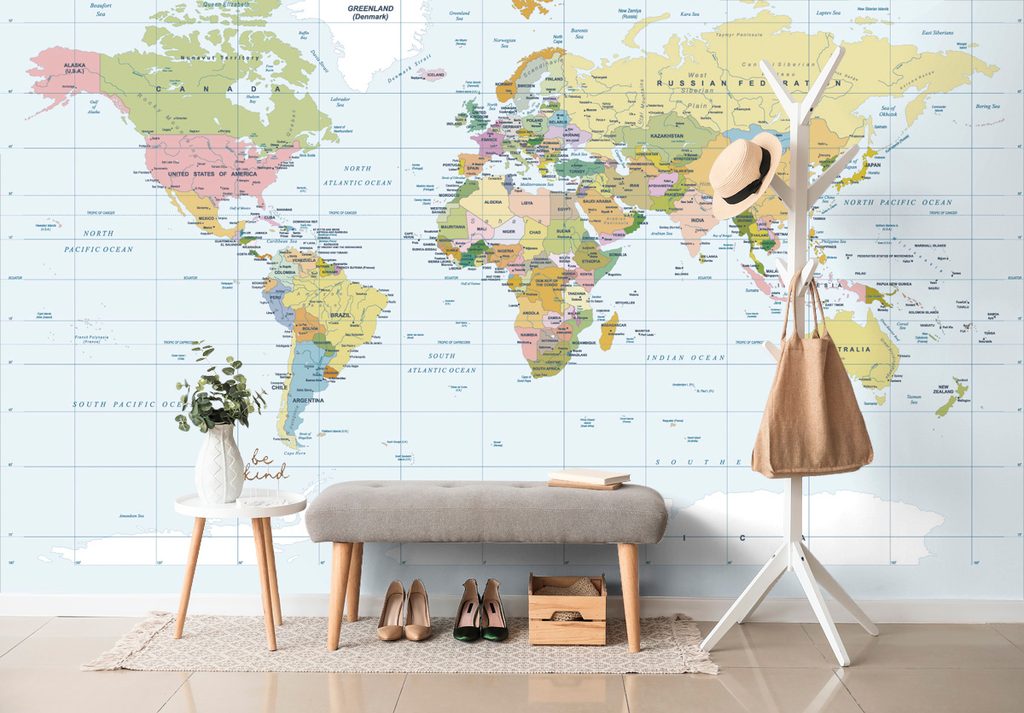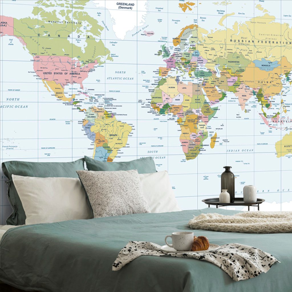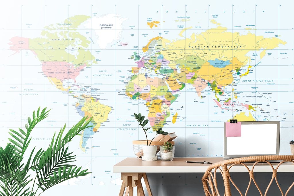 Samolepiaca tapeta prehľadná mapa sveta na bielom pozadí