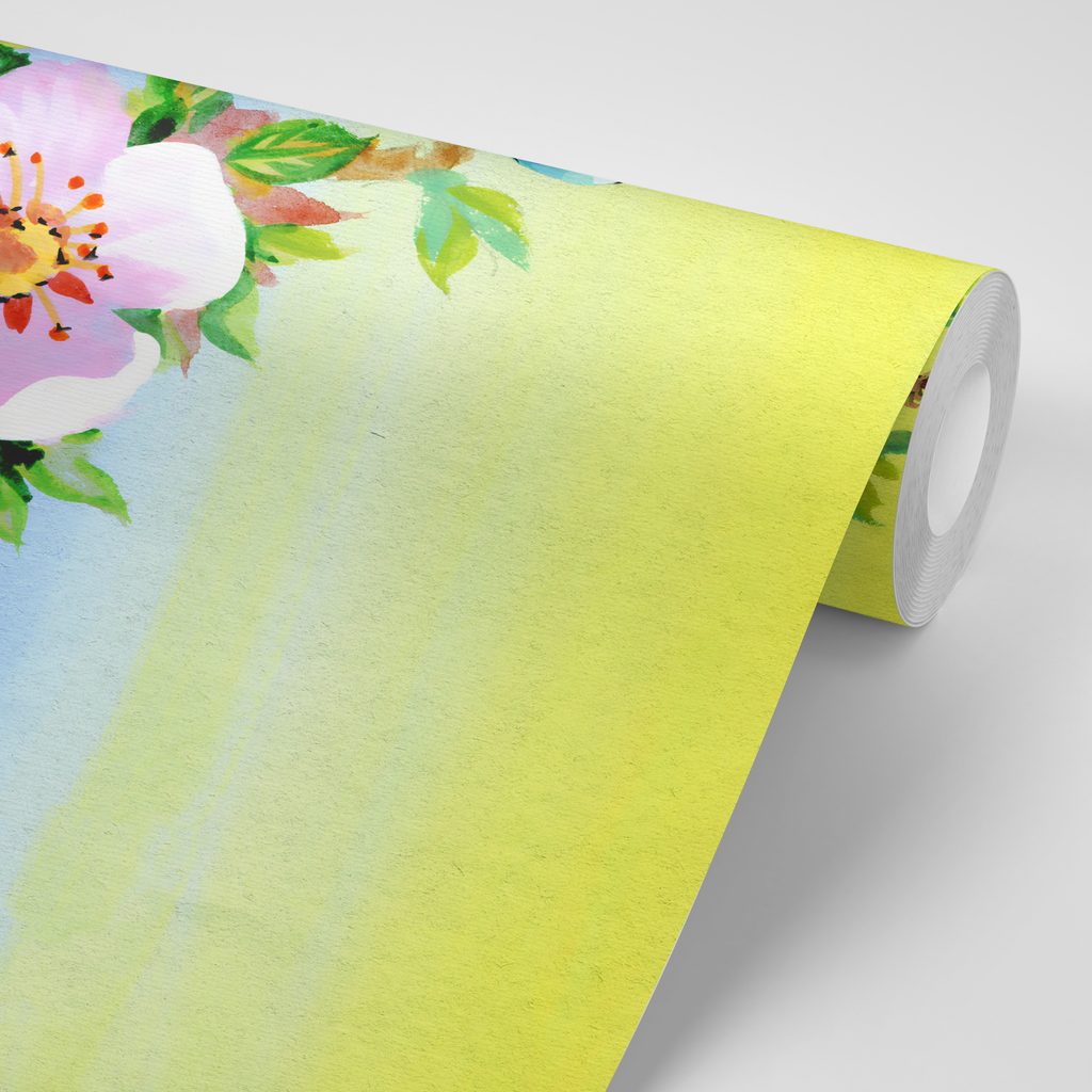 Tapeta sýkorky sediace na konáriku s kvetmi