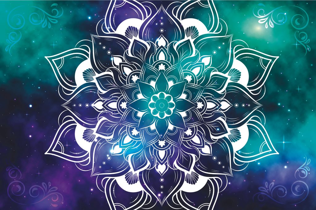 Samolepiaca tapeta galaktická Mandala v čiernobielom prevedení