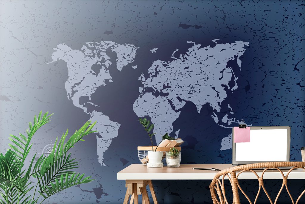 Tapeta vintage mapa sveta v modrom prevedení