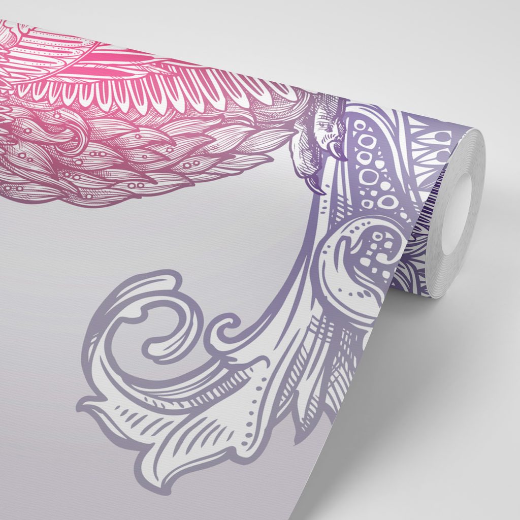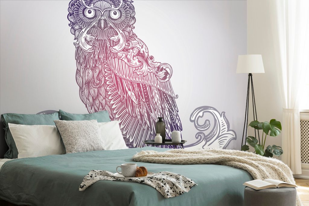 Samolepiaca tapeta zaujímavá sova v ružových tónoch